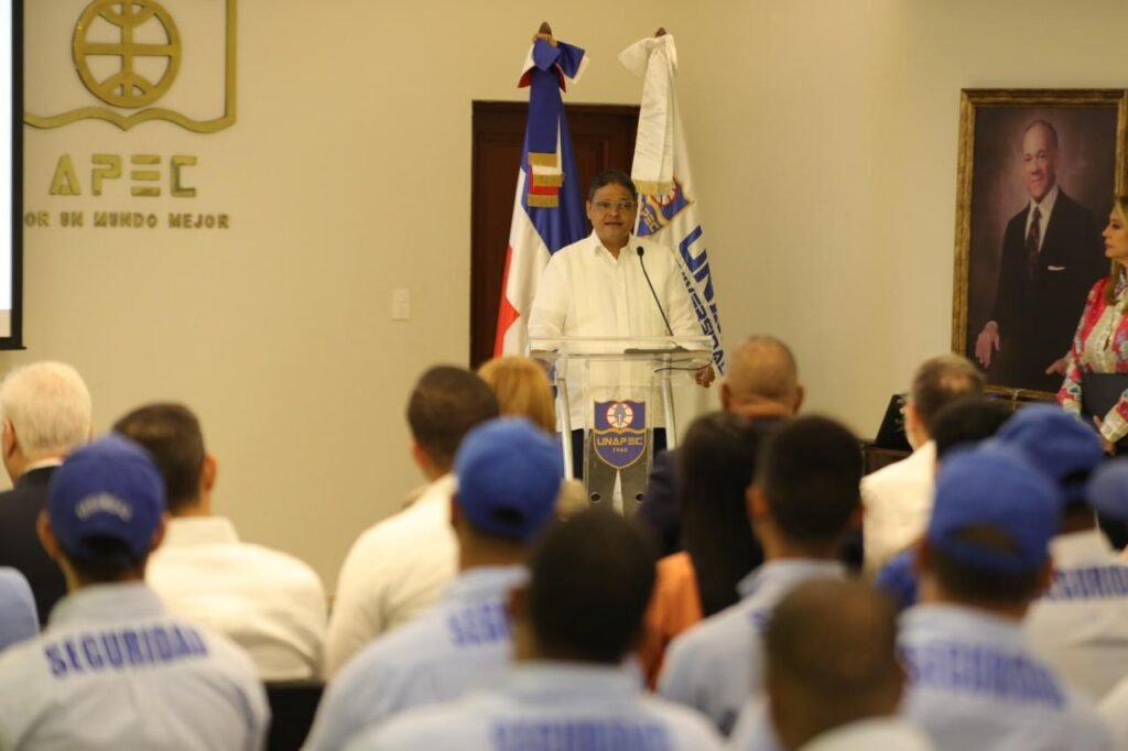 Las palabras centrales del acto estuvieron a cargo del rector de Unapec, Lic. Erik Pérez Vega, quien resaltó que la misión educativa no puede desligarse de la responsabilidad institucional de garantizar seguridad, protección y continuidad académica ante cualquier eventualidad.